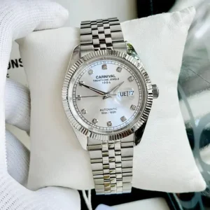 Đồng hồ đôi nam nữ chính hãng Carnival 8131 8131L 8131 8131G dây thép trắng máy cơ mặt kính sapphire