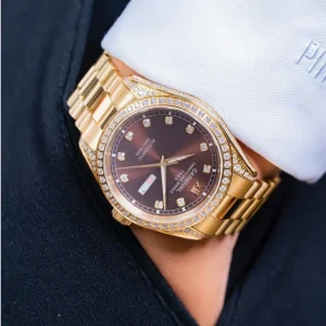 Đồng hồ nam chính hãng Carnival 8168 8168G vỏ vàng dây cao su máy cơ mặt kính sapphire size 42mm