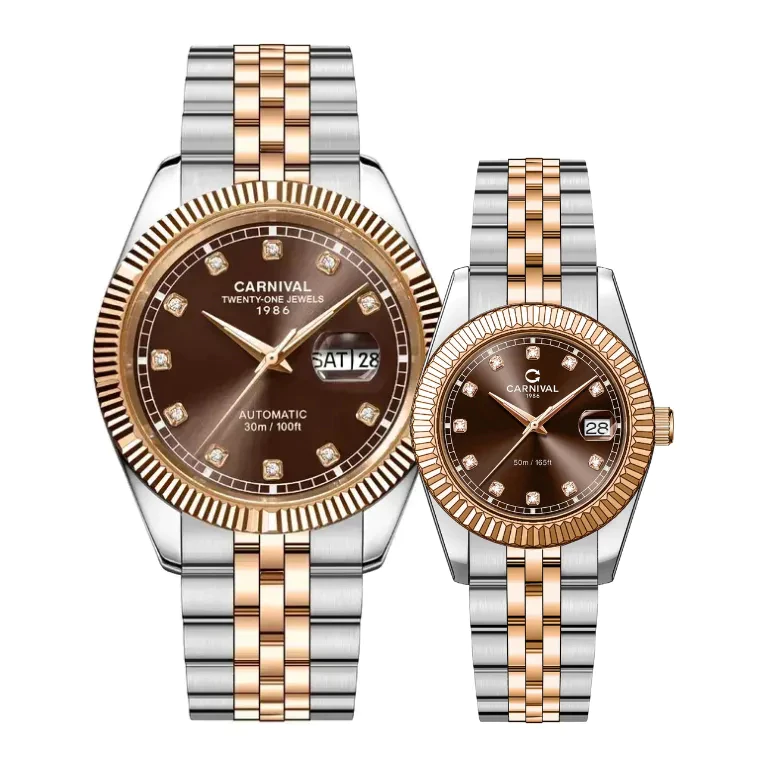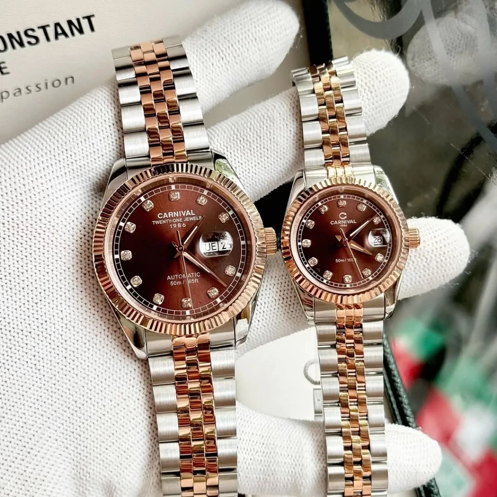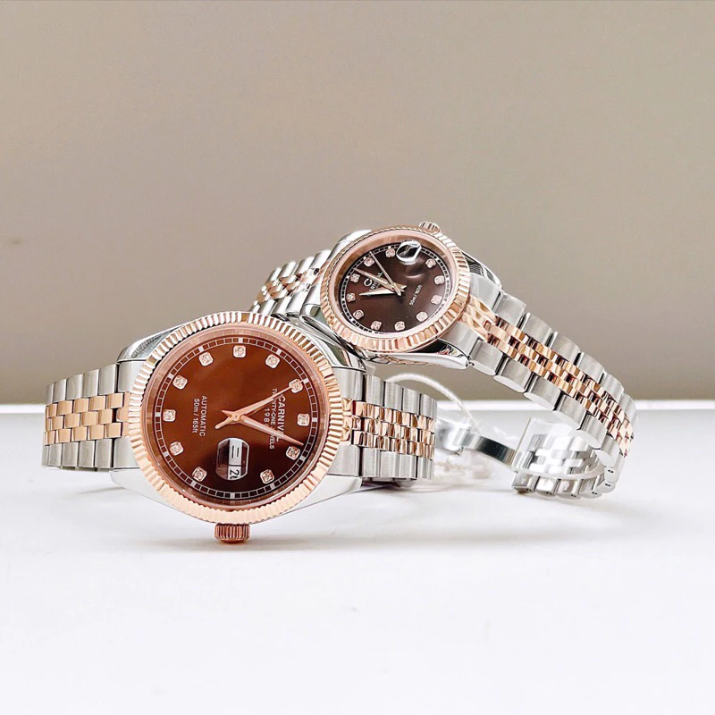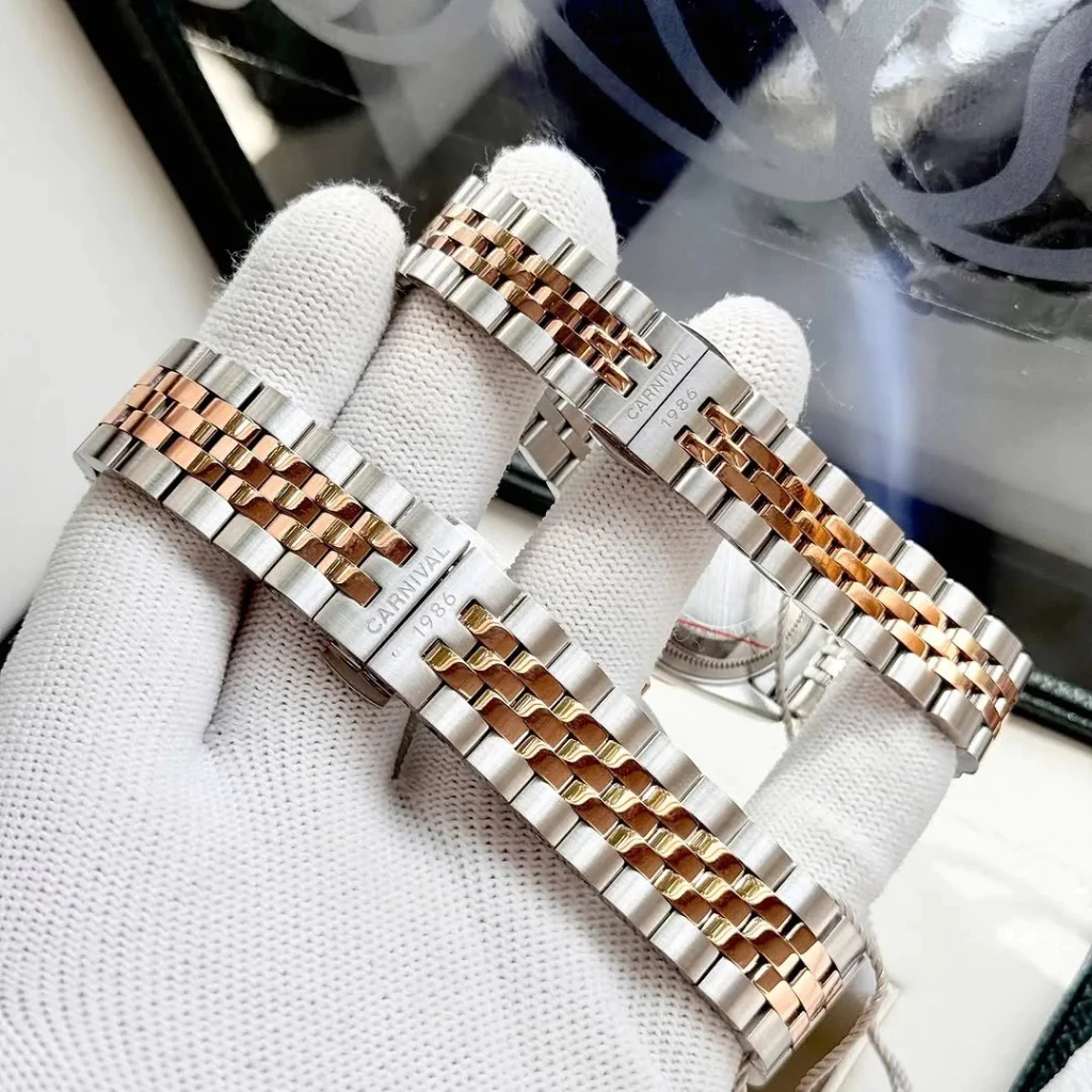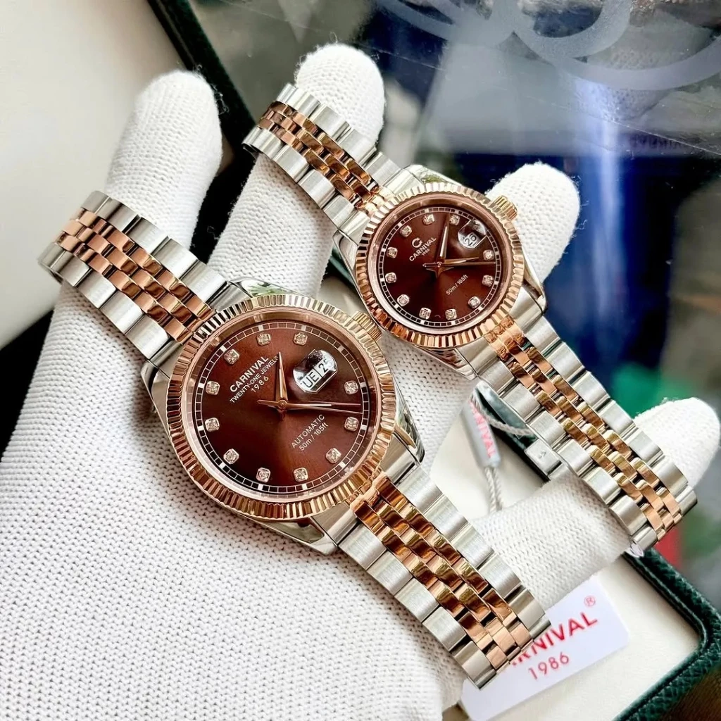 Đồng hồ đôi nam nữ chính hãng Carnival 8131 8131L 8131 8131G dây thép máy cơ Nhật mặt kính sapphire