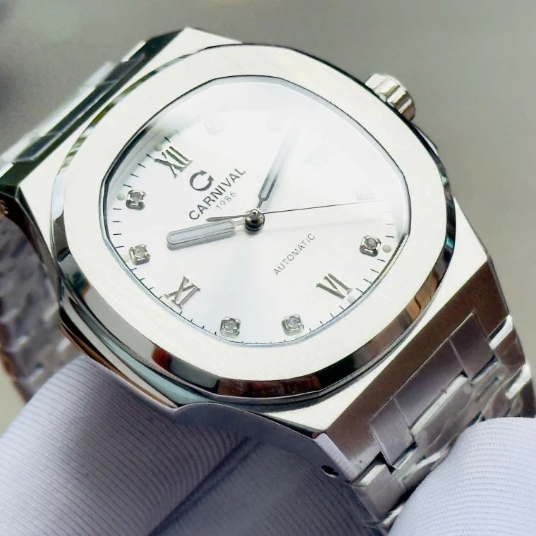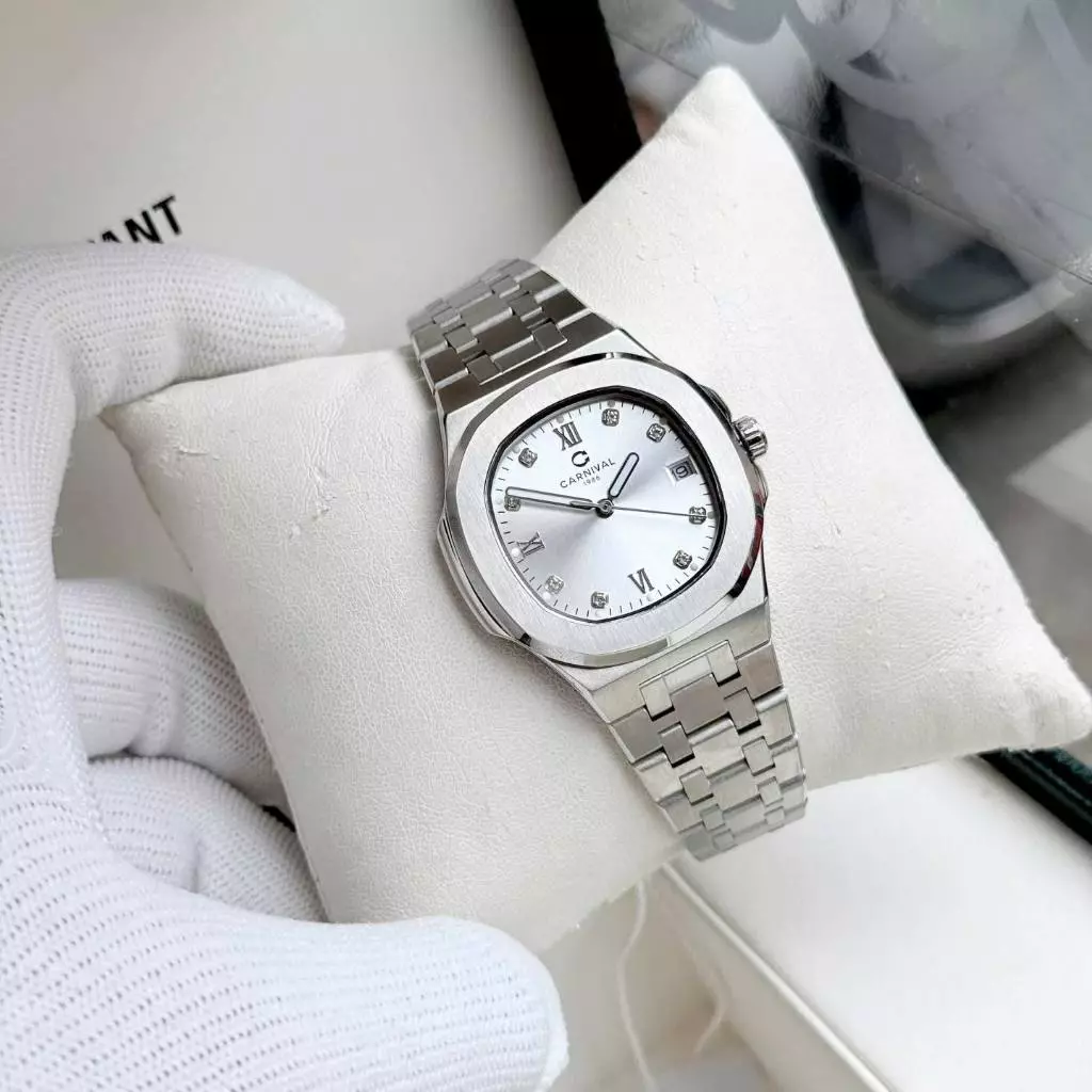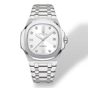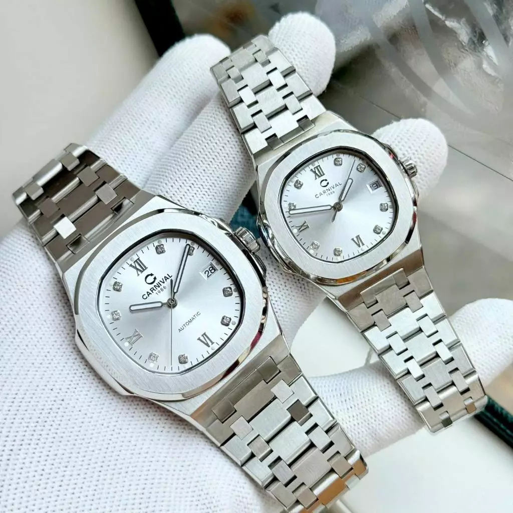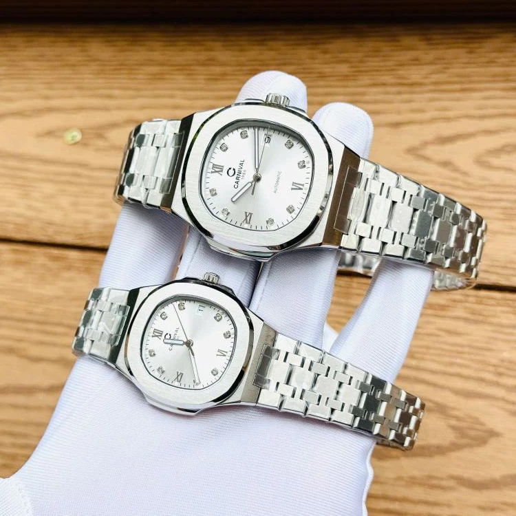 Đồng hồ đôi nam nữ chính hãng Carnival 8160 8160L 8160 8160G dây thép trắng máy cơ mặt kính sapphire