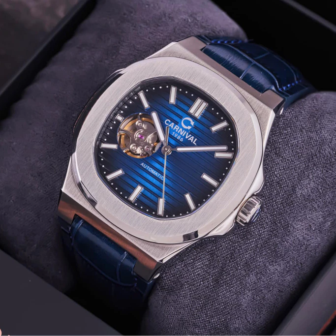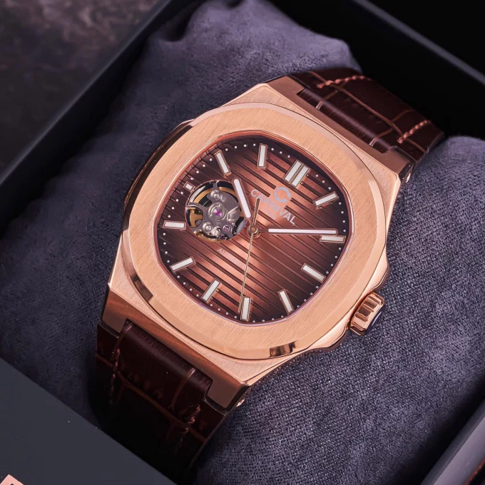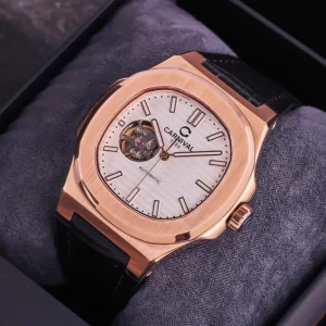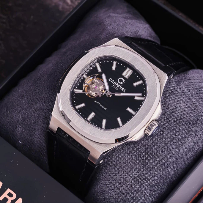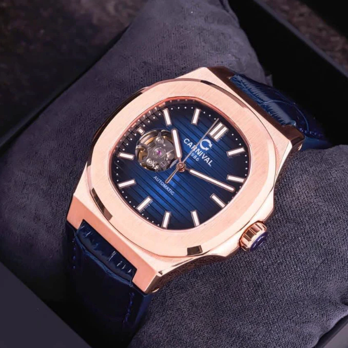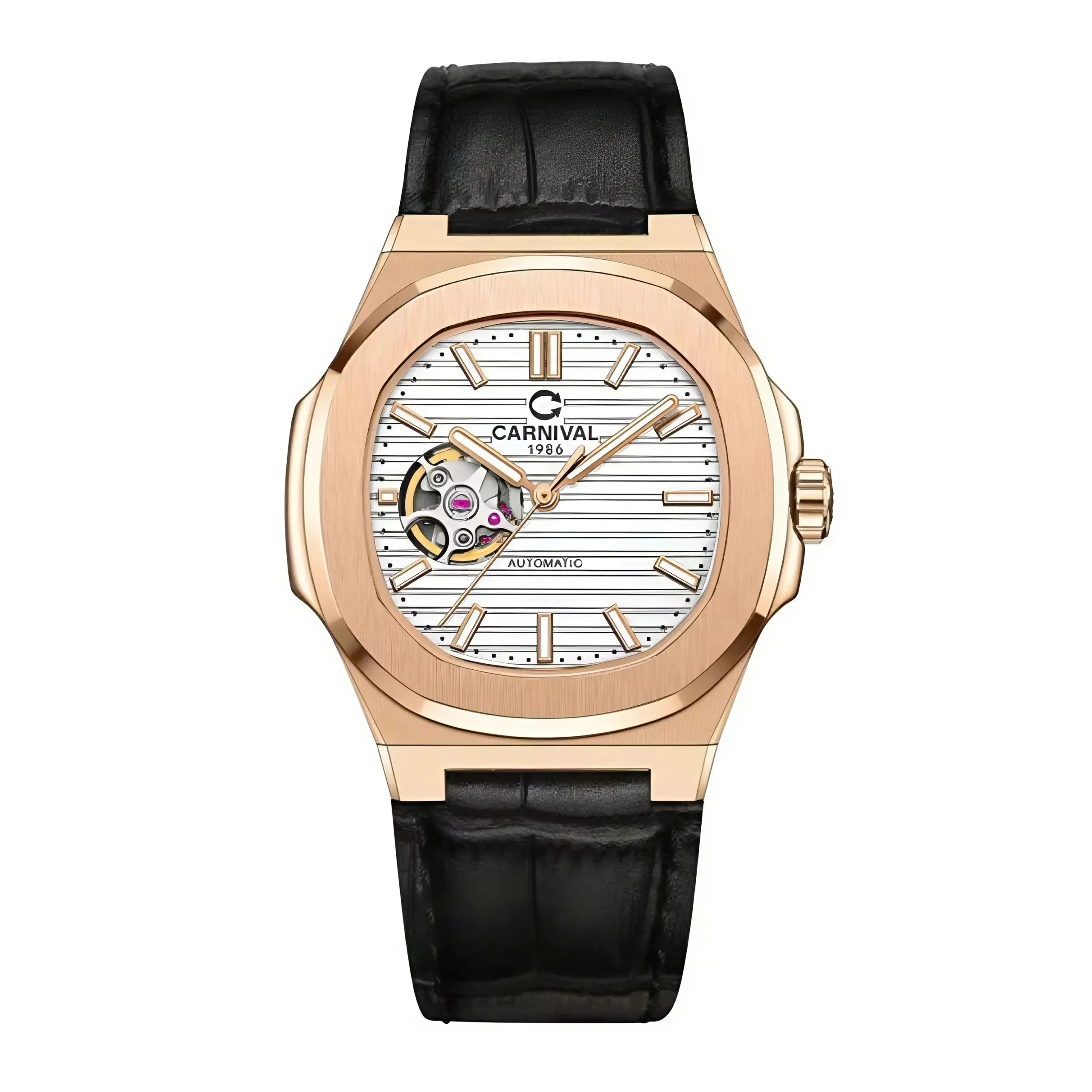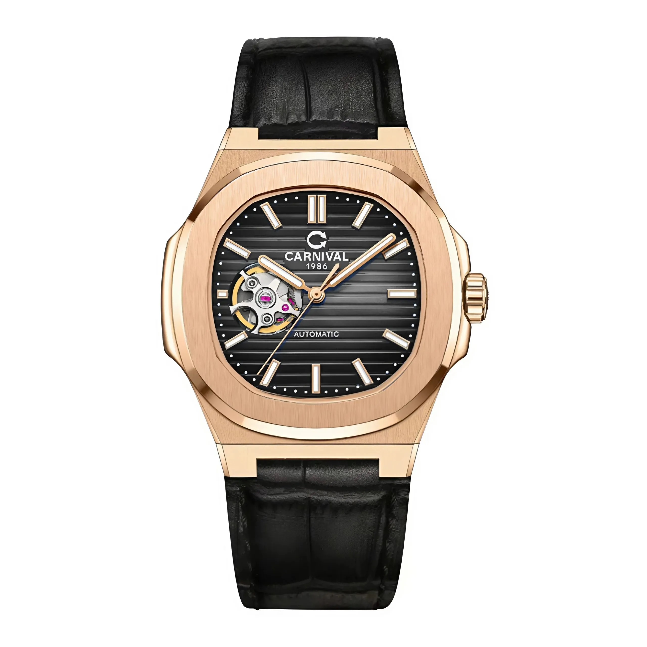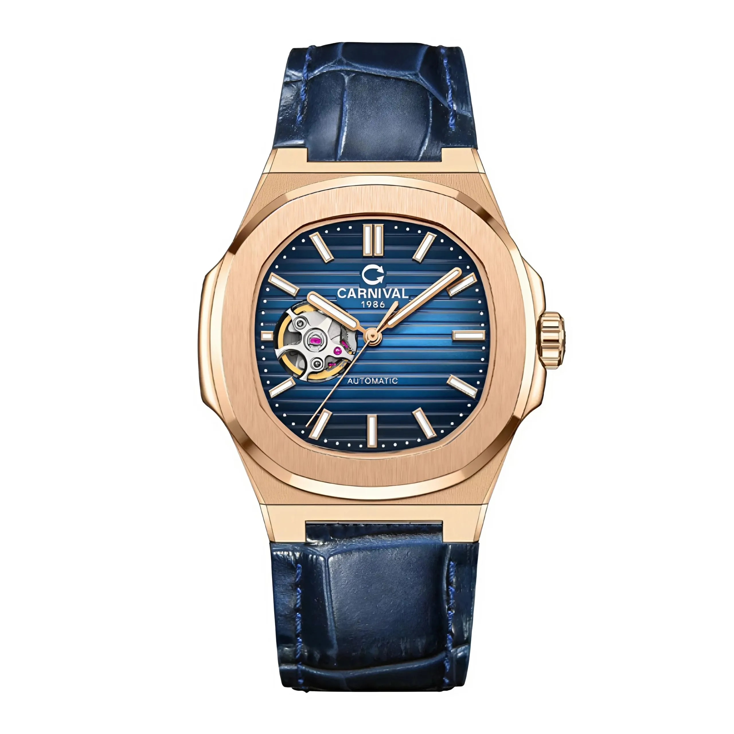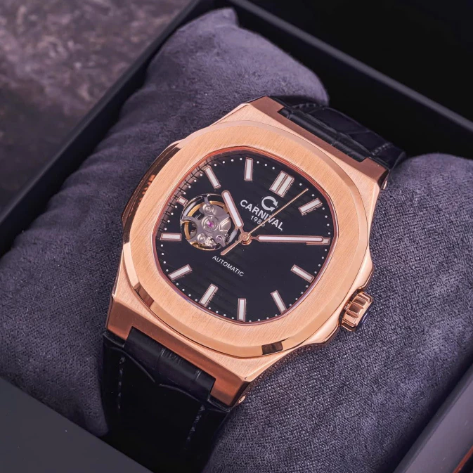 Đồng hồ nam chính hãng Carnival 8128 8128G dây da bản trơn máy cơ mặt kính sapphire size 40mm