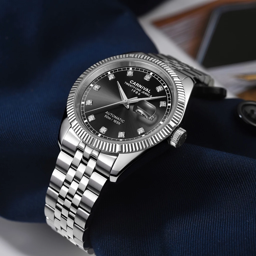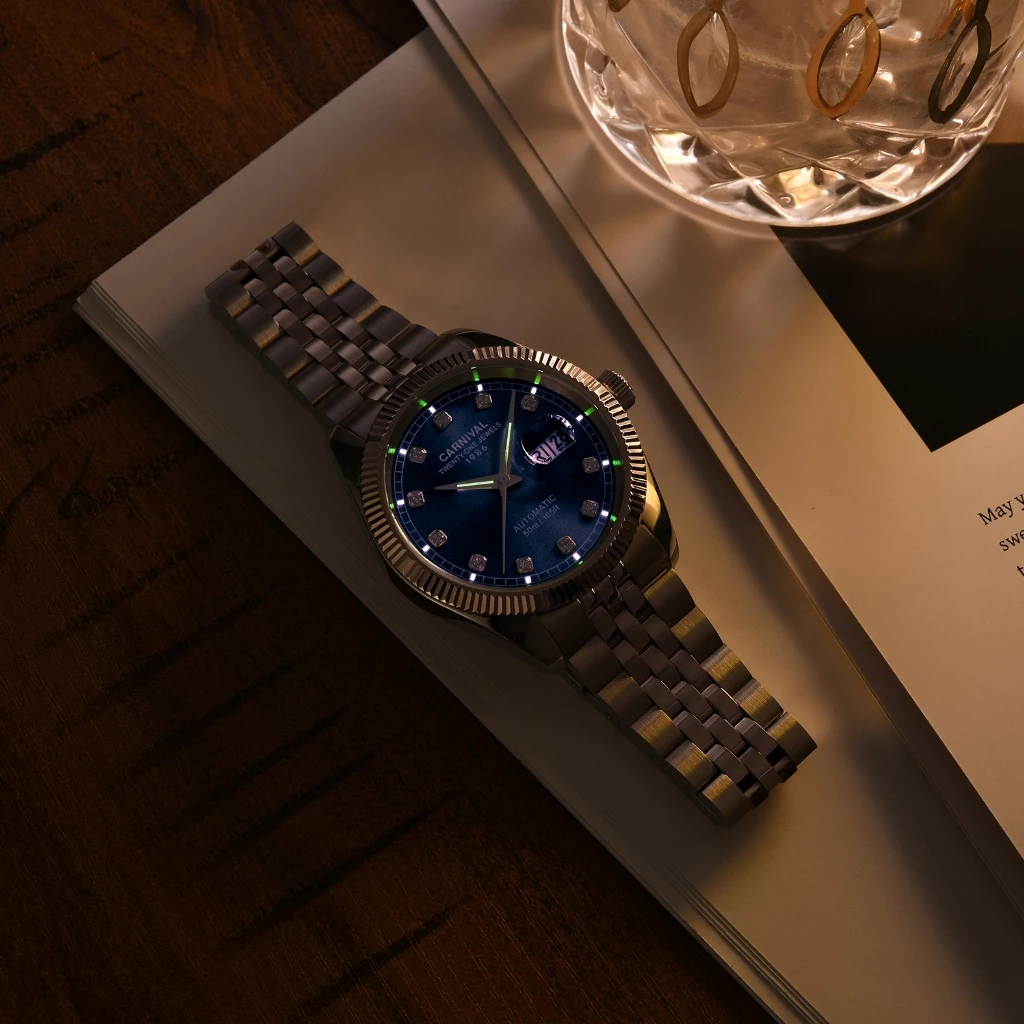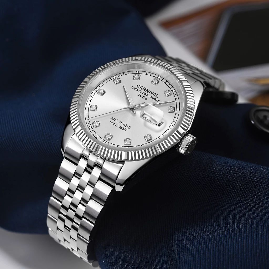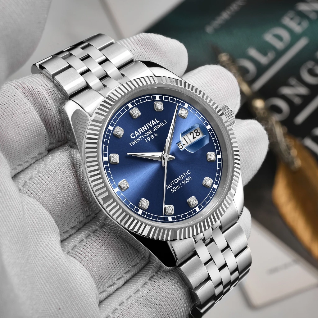 Đồng hồ nữ chính hãng Carnival 8131 8131G datejust dây thép mặt kính sapphire nguyên khối size 41mm
