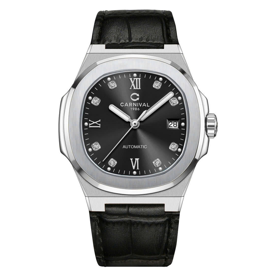 Đồng hồ nam chính hãng Carnival 8160 8160G dây da máy cơ Seiko NH35A mặt kính sapphire size 41mm