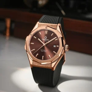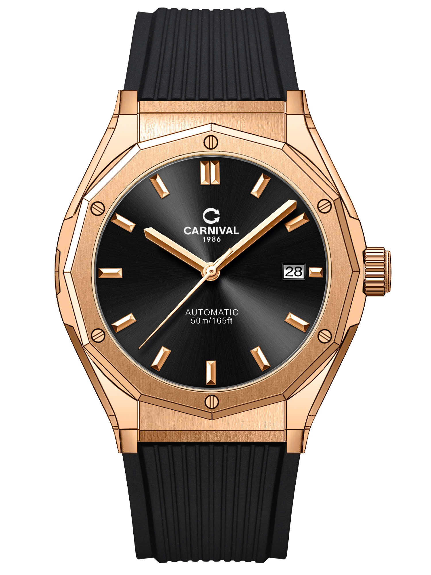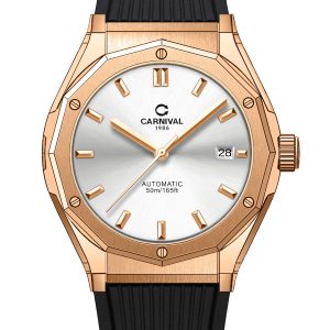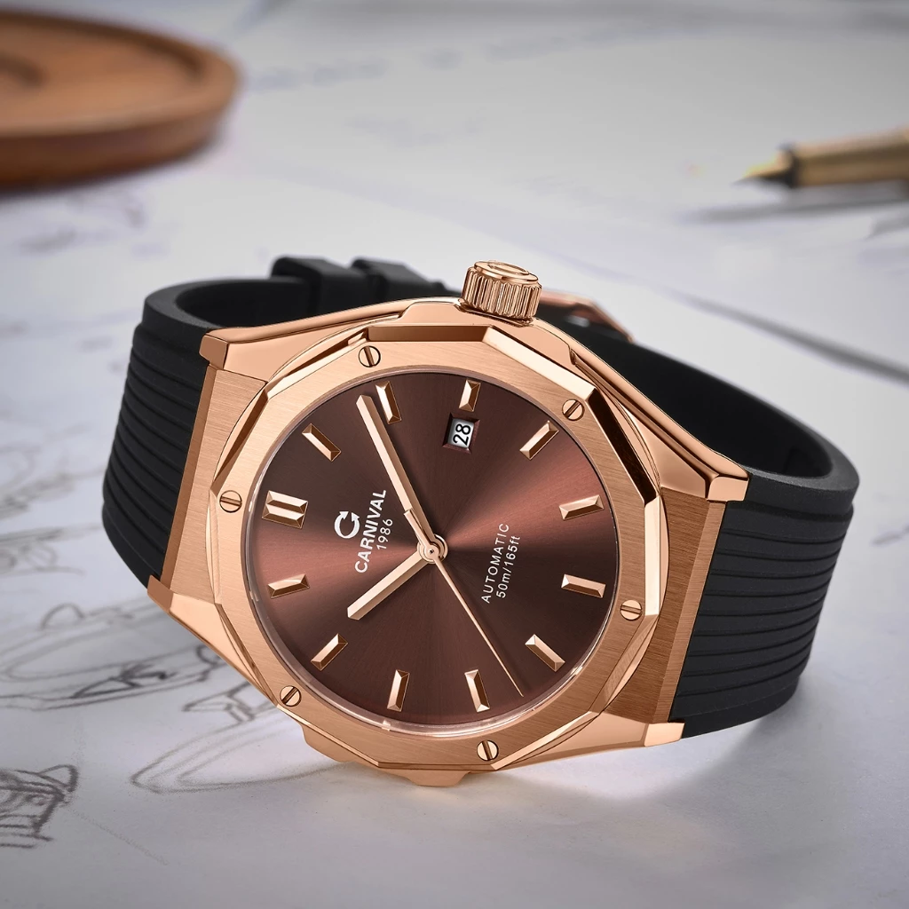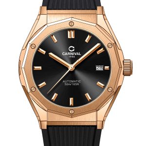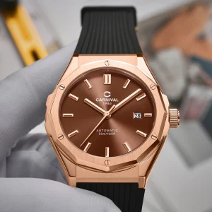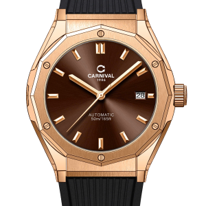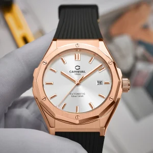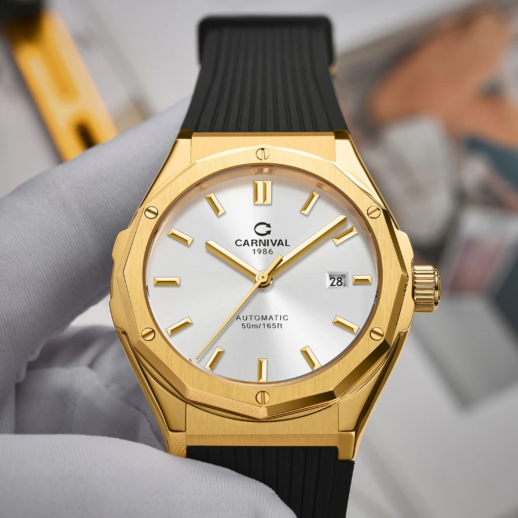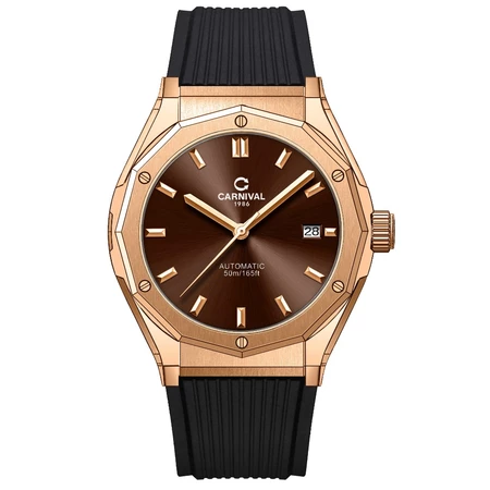 Đồng hồ nam chính hãng Carnival 8168 8168G vỏ vàng dây cao su máy cơ mặt kính sapphire size 42mm