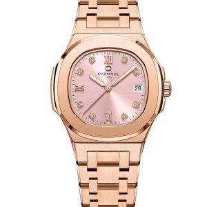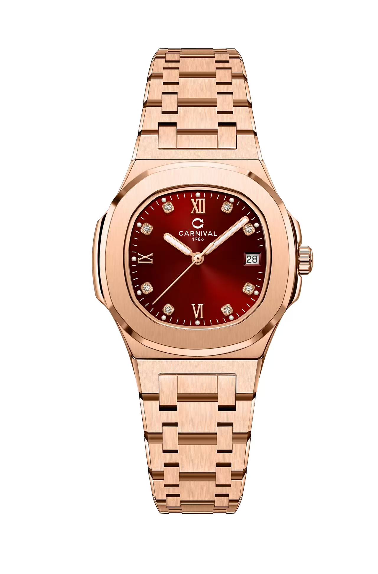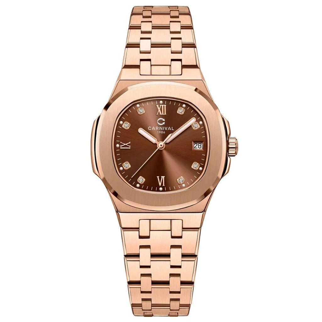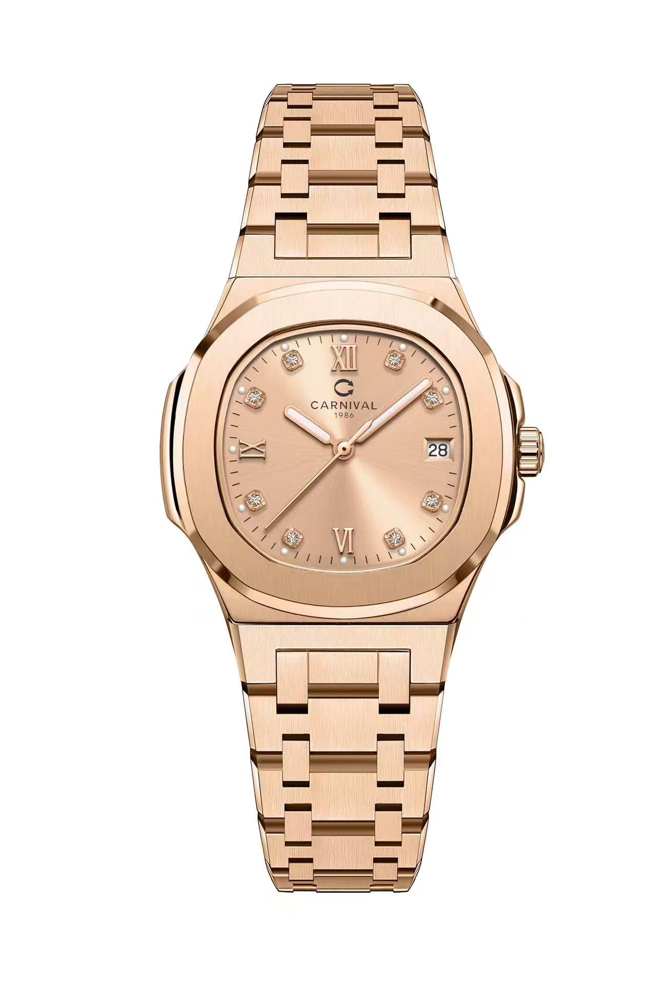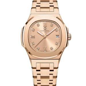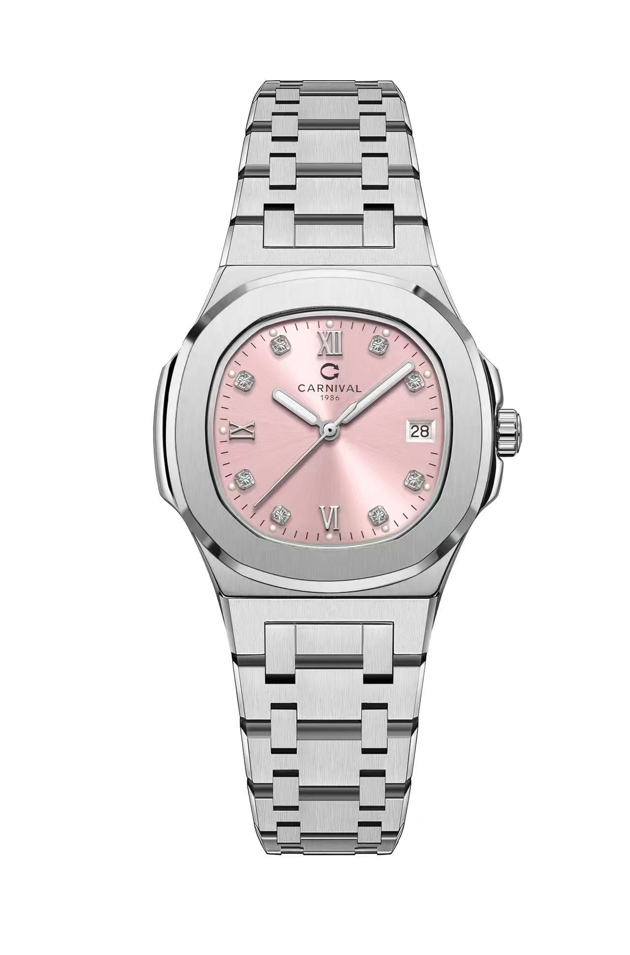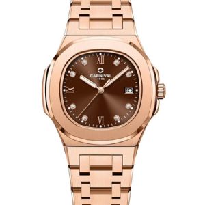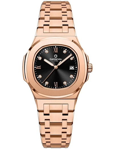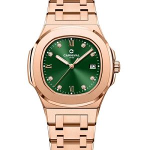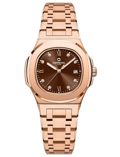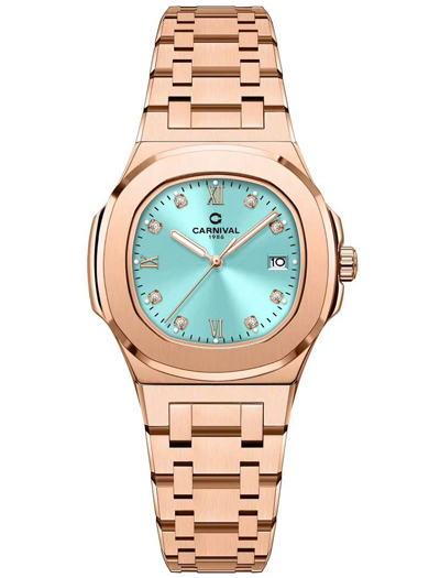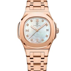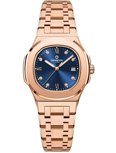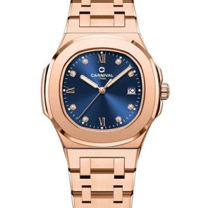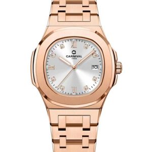 Nếu bạn yêu thích phong cách thanh lịch, tinh tế mang nét đặc trưng Thụy Sĩ, thì CARNIVAL 8160L chính là lựa chọn lý tưởng. Thuộc bộ sưu tập Carnival 8160L dành cho nữ, mẫu đồng hồ này gây ấn tượng ngay từ ánh nhìn đầu tiên với mặt số tròn cổ điển đậm chất dresswatch, kết hợp sắc vàng hồng hoặc bạc sang trọng trên viền bezel và kim chỉ — vừa trang nhã, vừa nổi bật nhưng không phô trương.