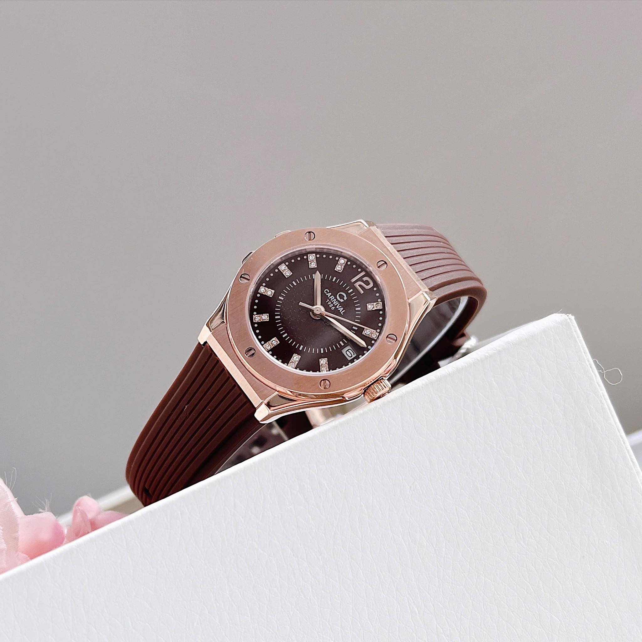 Đồng hồ nữ chính hãng Carnival 8173 8173L vỏ vàng máy pin mặt kính sapphire nguyên khối size 34mm